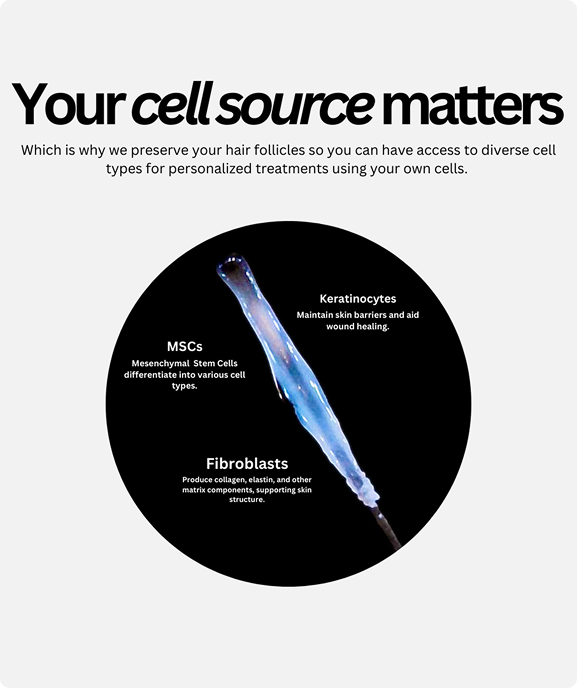 The source of stem cells matters when building personalized regenerative care.Hair follicles provide a rich, non-invasive source of stem cells that naturally support regeneration and repair. They also offer access to multiple cell types without the need for more invasive collection methods.